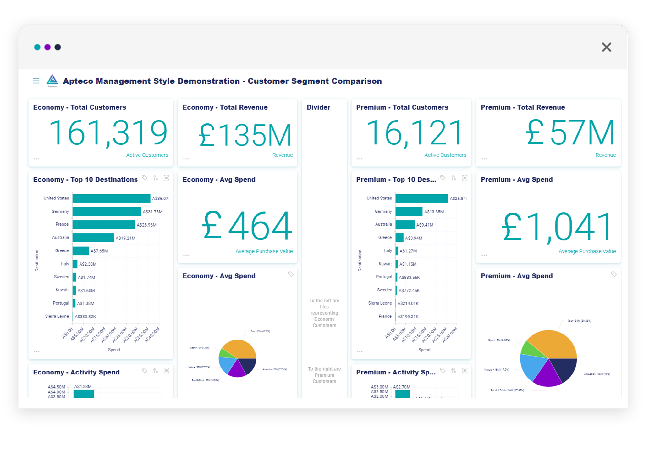 Try nowTo show you how Apteco dashboards can be easily designed and customised for specific business scenarios, we have created five different dashboard styles.